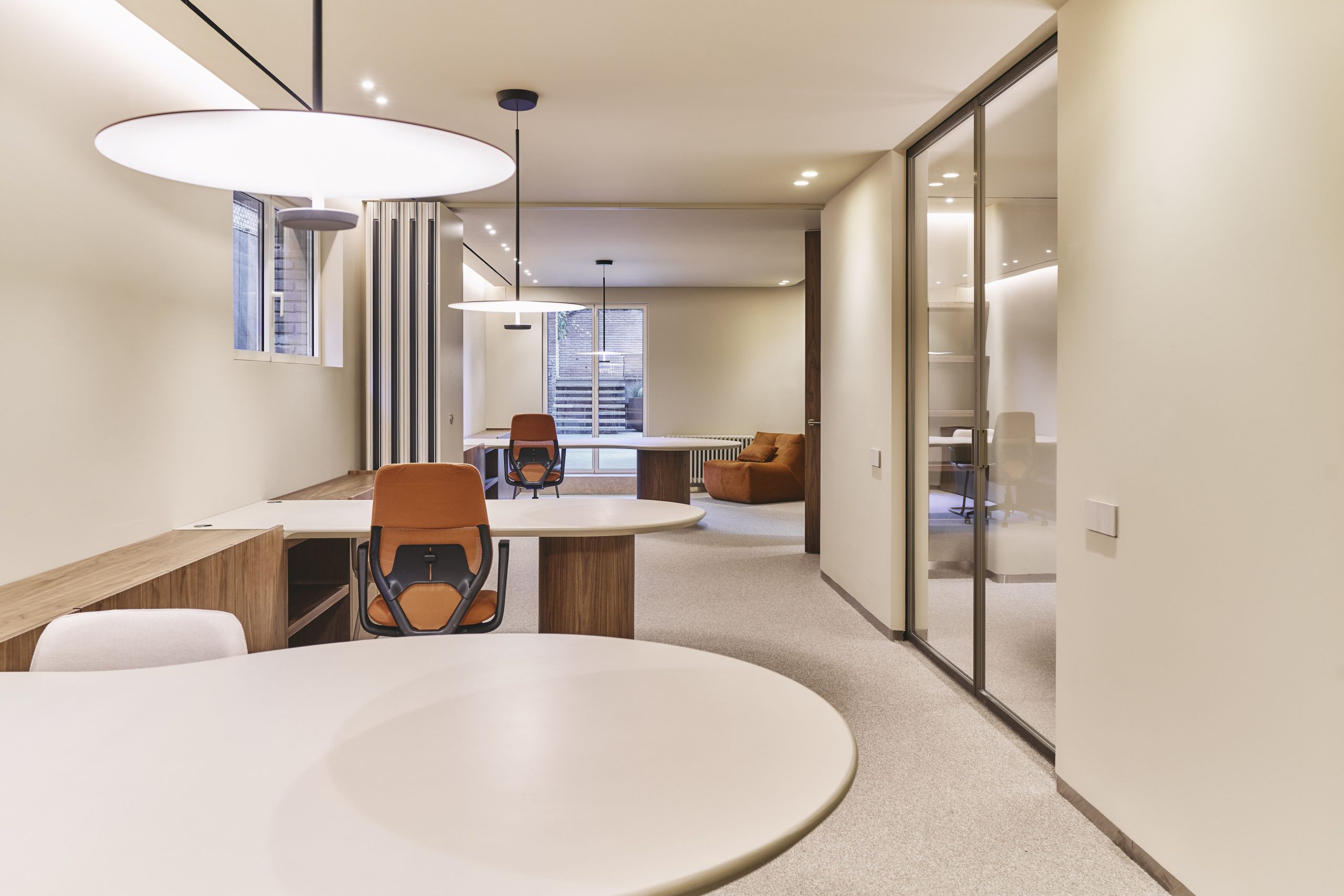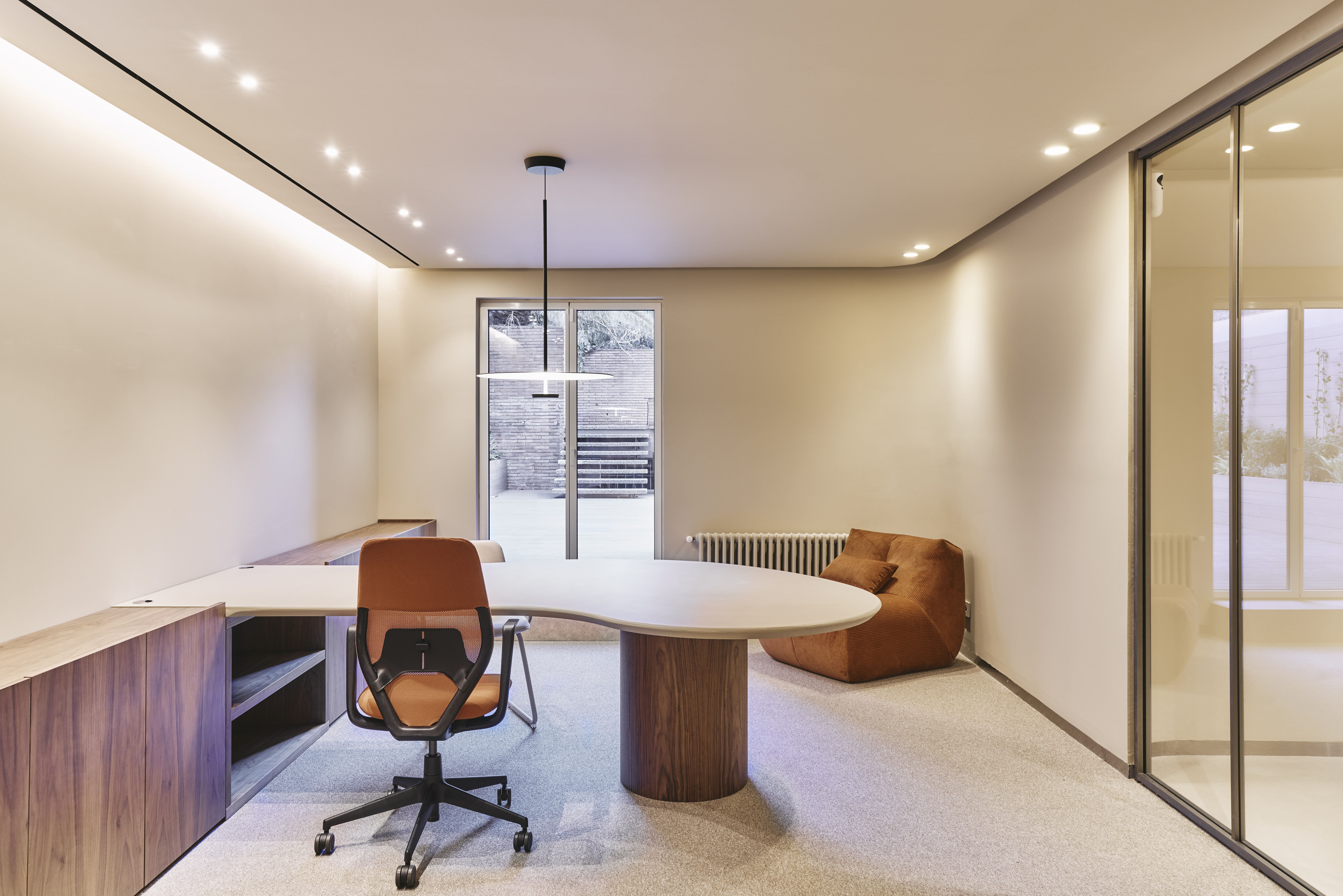 The result is a flexible, bright, and thoughtfully designed environment that balances aesthetics with functionality. A modern office where well-being and productivity come together, offering a space that invites both focus and interaction, all within a sophisticated and welcoming design atmosphere.