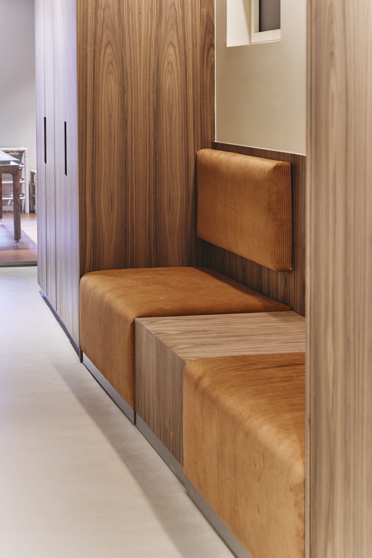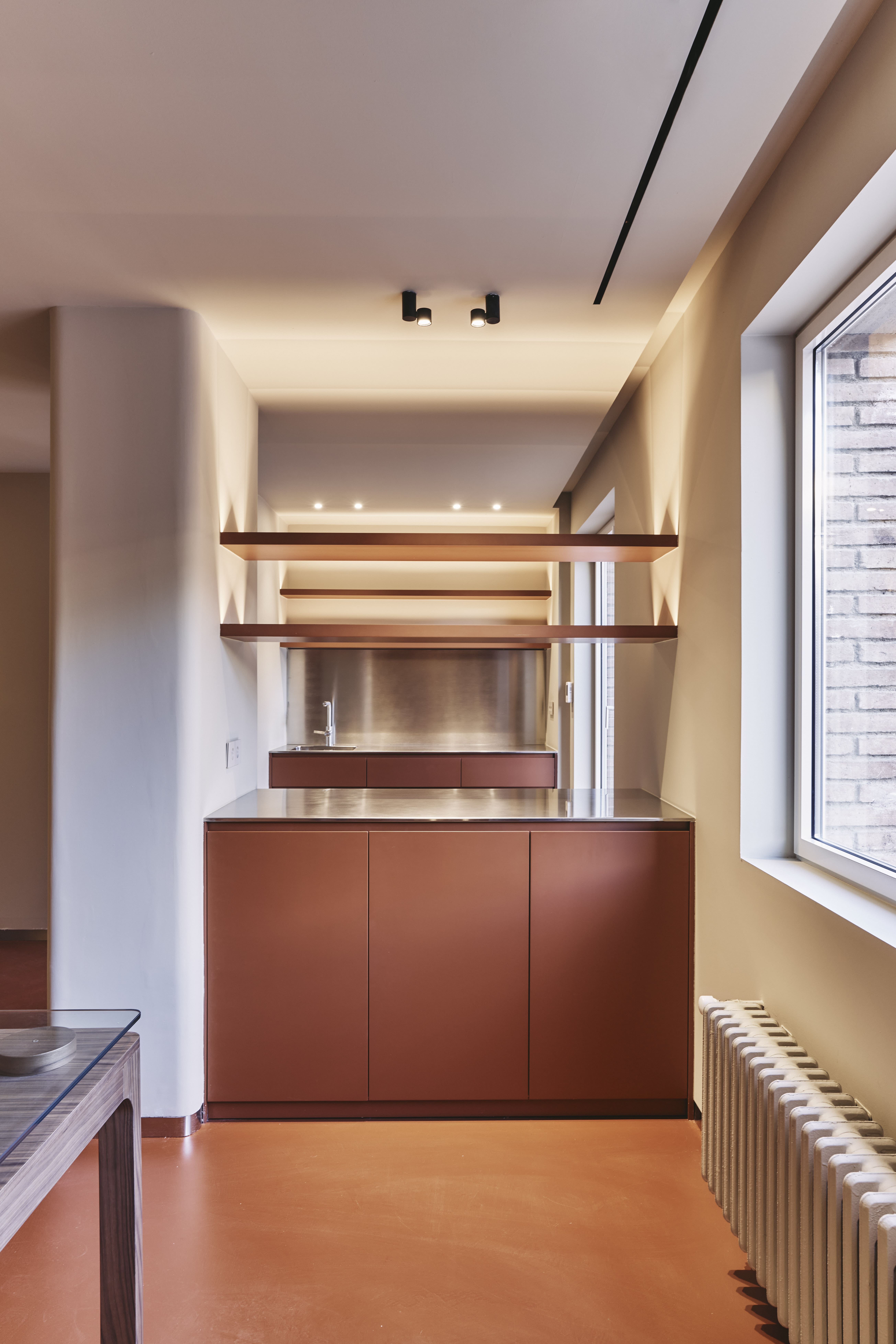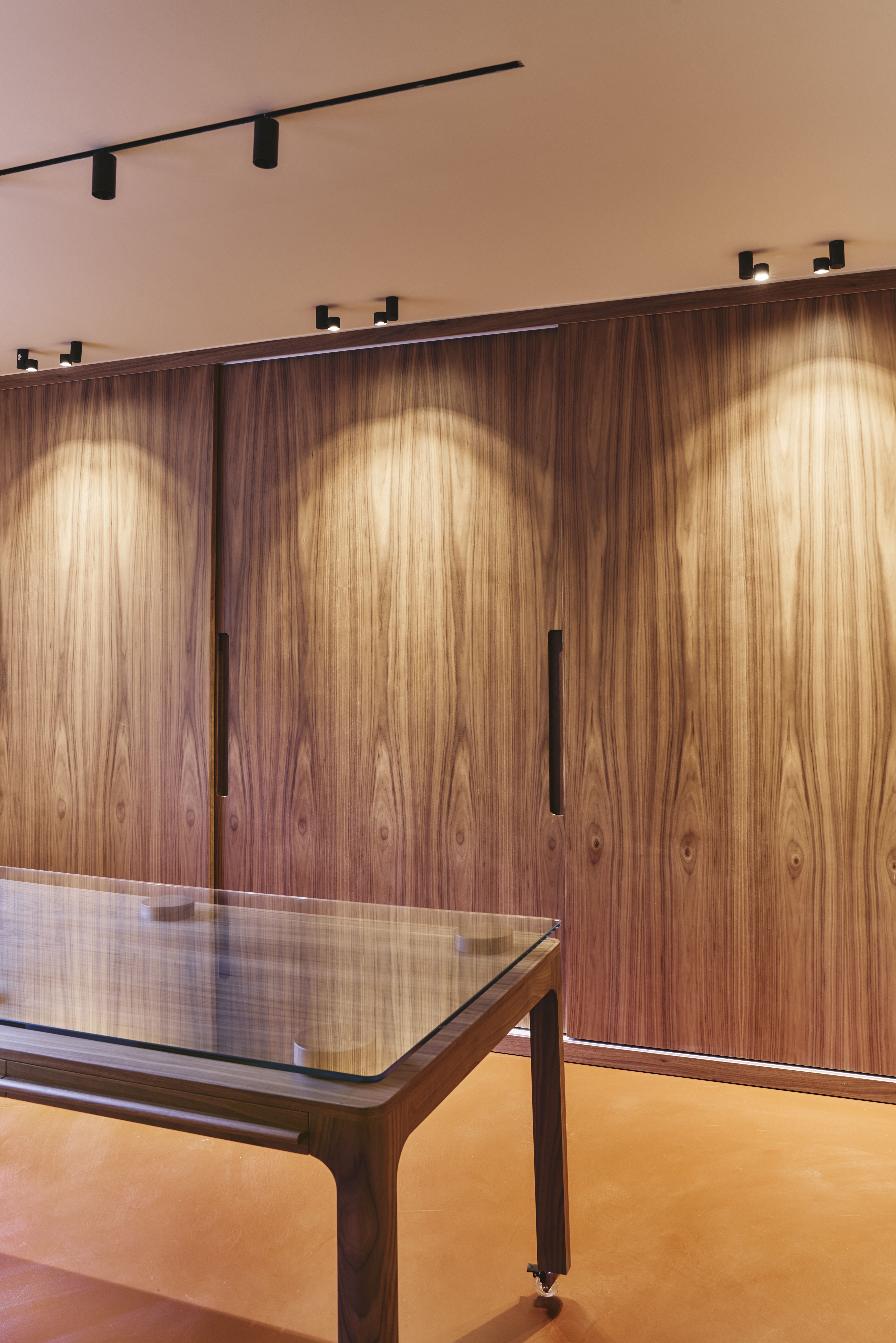 Since the space is located at street level, natural light planning has been a crucial aspect from the very beginning of the design process. The entry of light from the main and side façades has been optimized, with the aim of extending it into the deeper areas of the space through transparent surfaces, reflections, and a careful use of color treatment.